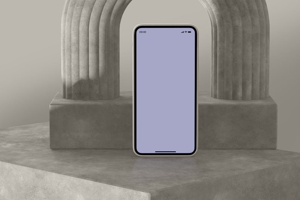 Mockup of a simplified iPhone. Inside the smart object interface (time, charge, wifi), no need to draw, just paste your design. This is a 2 in 1 mockup. You can remove the pretty background and keep just the color if you need it for your presentation.